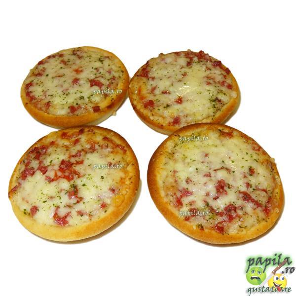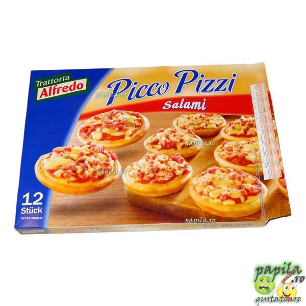 12 mini pizza, de approx 6-7 cm diametru. Sunt foarte de bune pentru o pizza congelata.